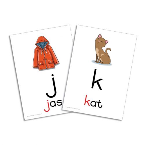 This set of cards displays how individual upper and lower case cursive letters are formed. A black dot indicates the starting position of each letter. Arrows show the rest of the formation. The individual cards make it handy to introduce each new sound one at a time. Any home language can use these generic cards. The cards are A5 sized, durable and wipeable. There are 26 cards in the set.